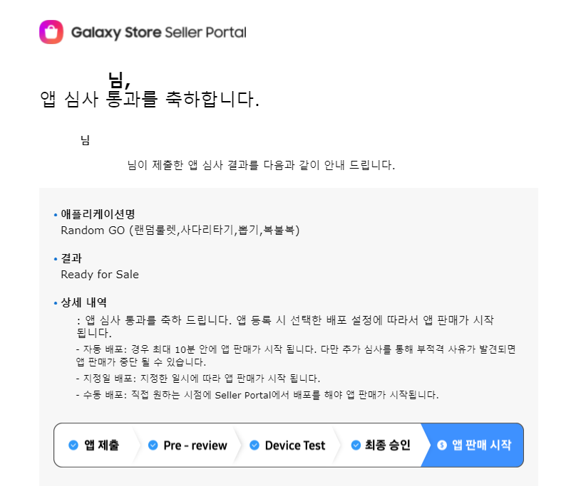 바로 앱 심사 통과를 축하한다는